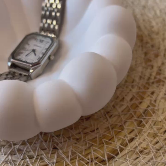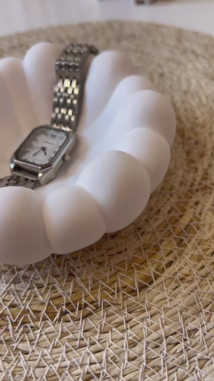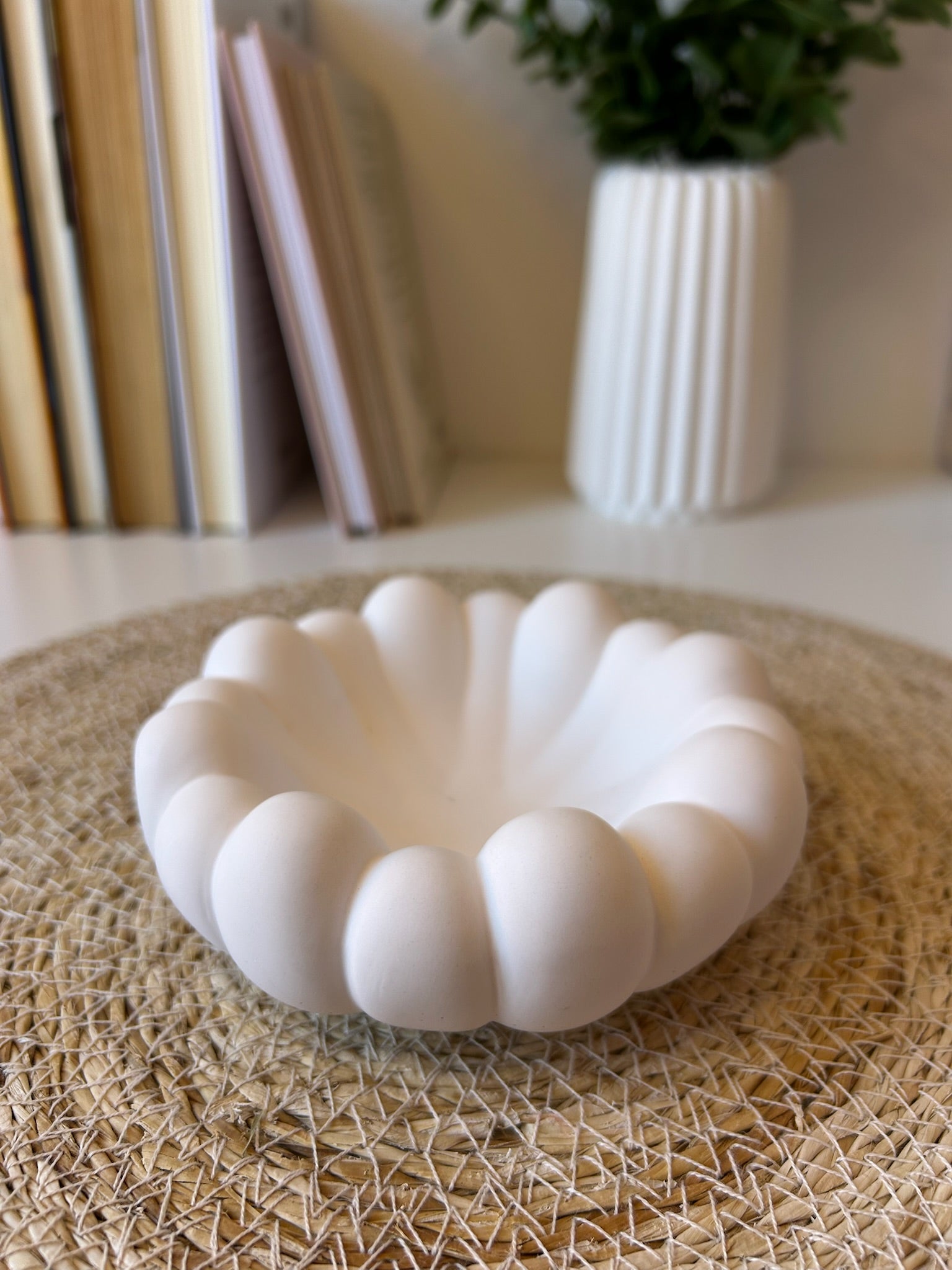 Cuenco hecho a mano en resina ecológica combina funcionalidad y diseño con líneas simples y colores suaves. Puede usarse como bandeja para pequeños objetos o como joyero, y encaja fácilmente en distintos espacios de la casa.
