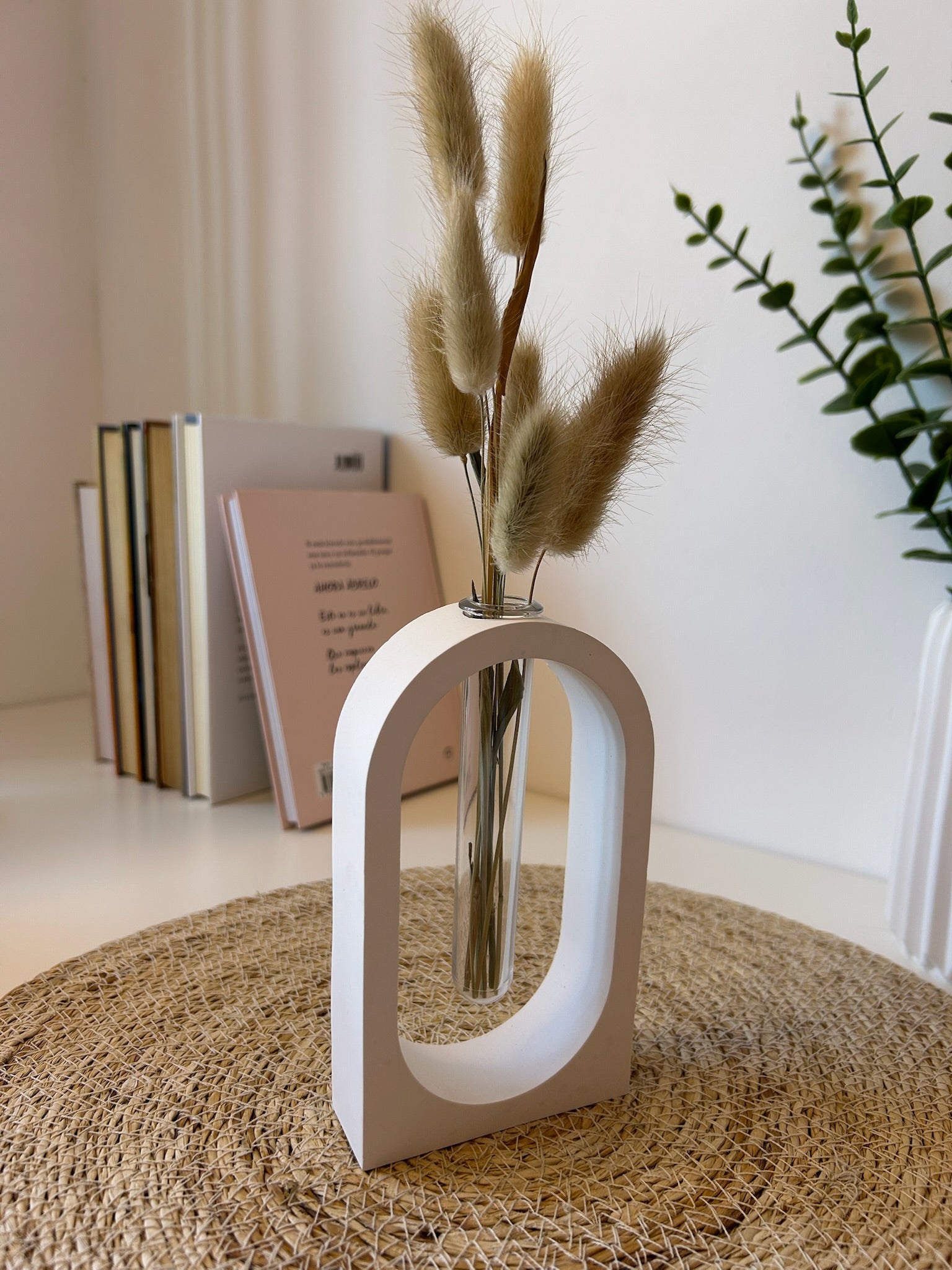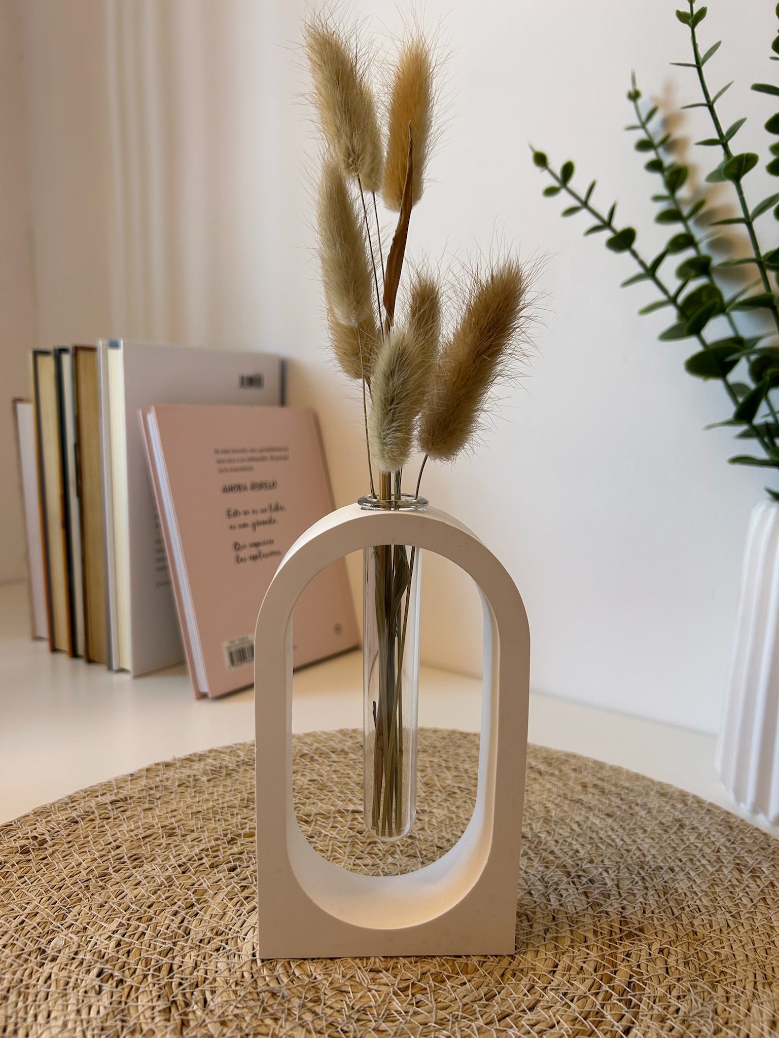 Con líneas suaves y una silueta moderna, este jarrón en forma de arco ha sido diseñado para aportar equilibrio visual y carácter a cualquier espacio. Su diseño minimalista lo convierte en una pieza versátil, ideal para decorar con flores secas, ramas o simplemente como objeto escultórico.