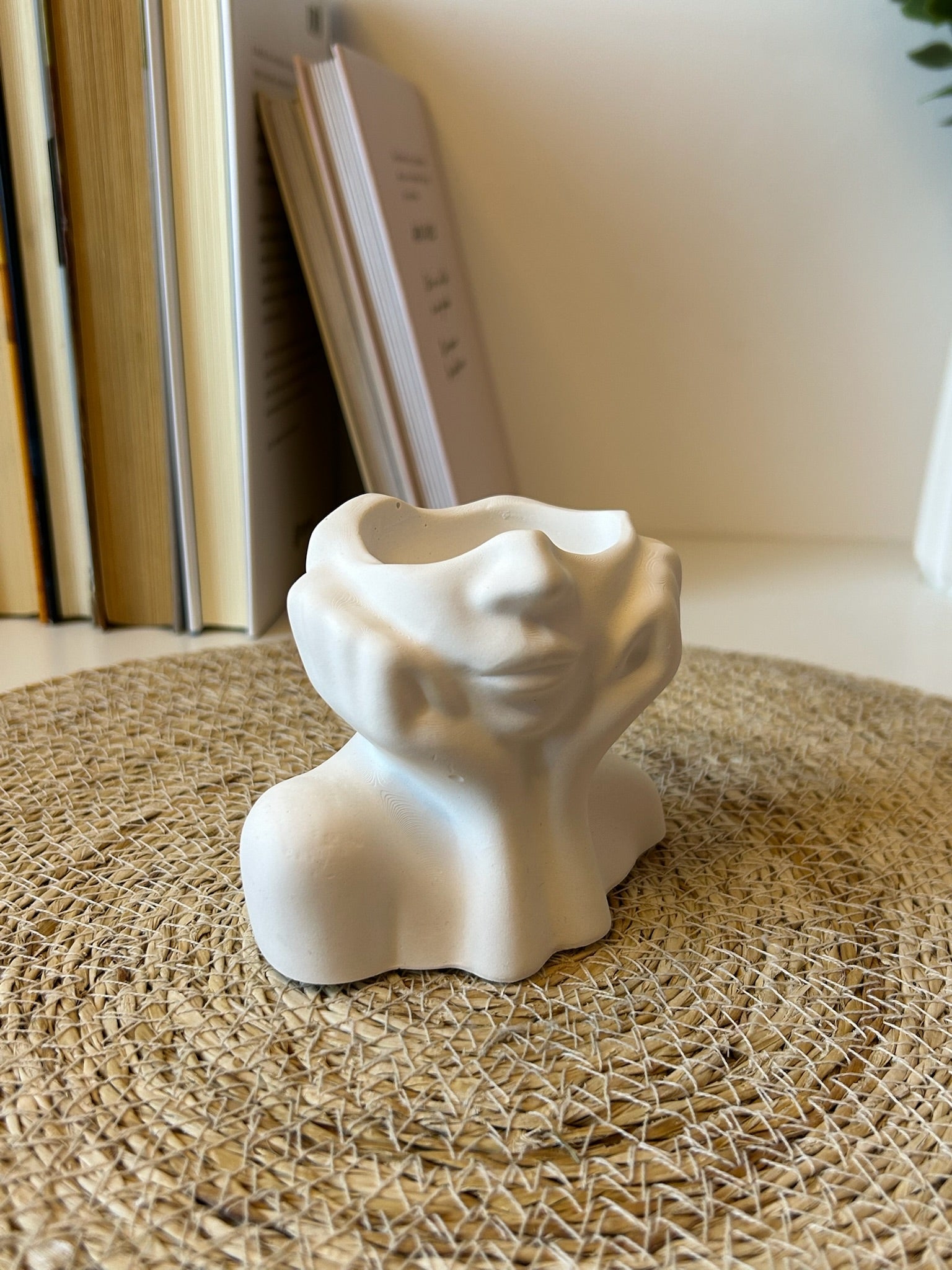 Este jarrón representa la quietud y la fuerza interior de una mujer en paz. Su silueta contempla líneas suaves y equilibradas, que evocan armonía y reposo. Con su presencia serena, invita a detenerse y respirar, a crear un espacio de calma.