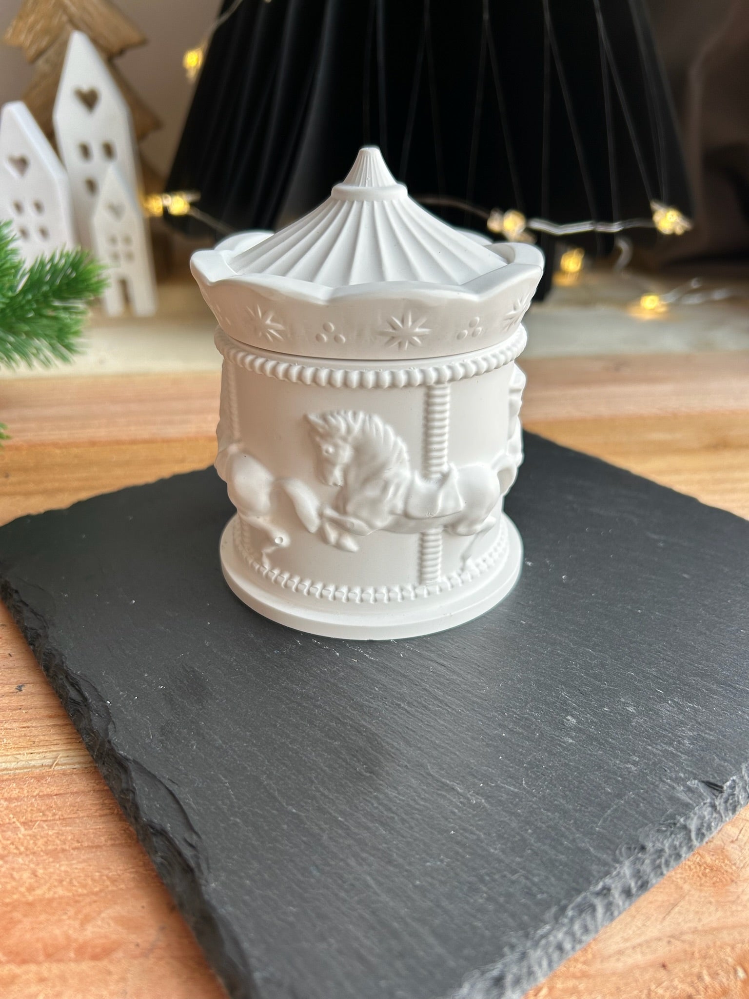 Descubre la combinación perfecta de diseño y sostenibilidad con este exclusivo pack de decoración hecho en resina ecológica. Incluye tres casitas de distintos tamaños, un portavelas y un recipiente con tapa que simula un tiovivo, creando un conjunto lleno de encanto y fantasía. Ideal para decorar mesas, estanterías o rincones especiales, aporta un toque festivo y acogedor a tu hogar, y es un regalo único para quienes valoran la elegancia artesanal y el cuidado del medio ambiente.