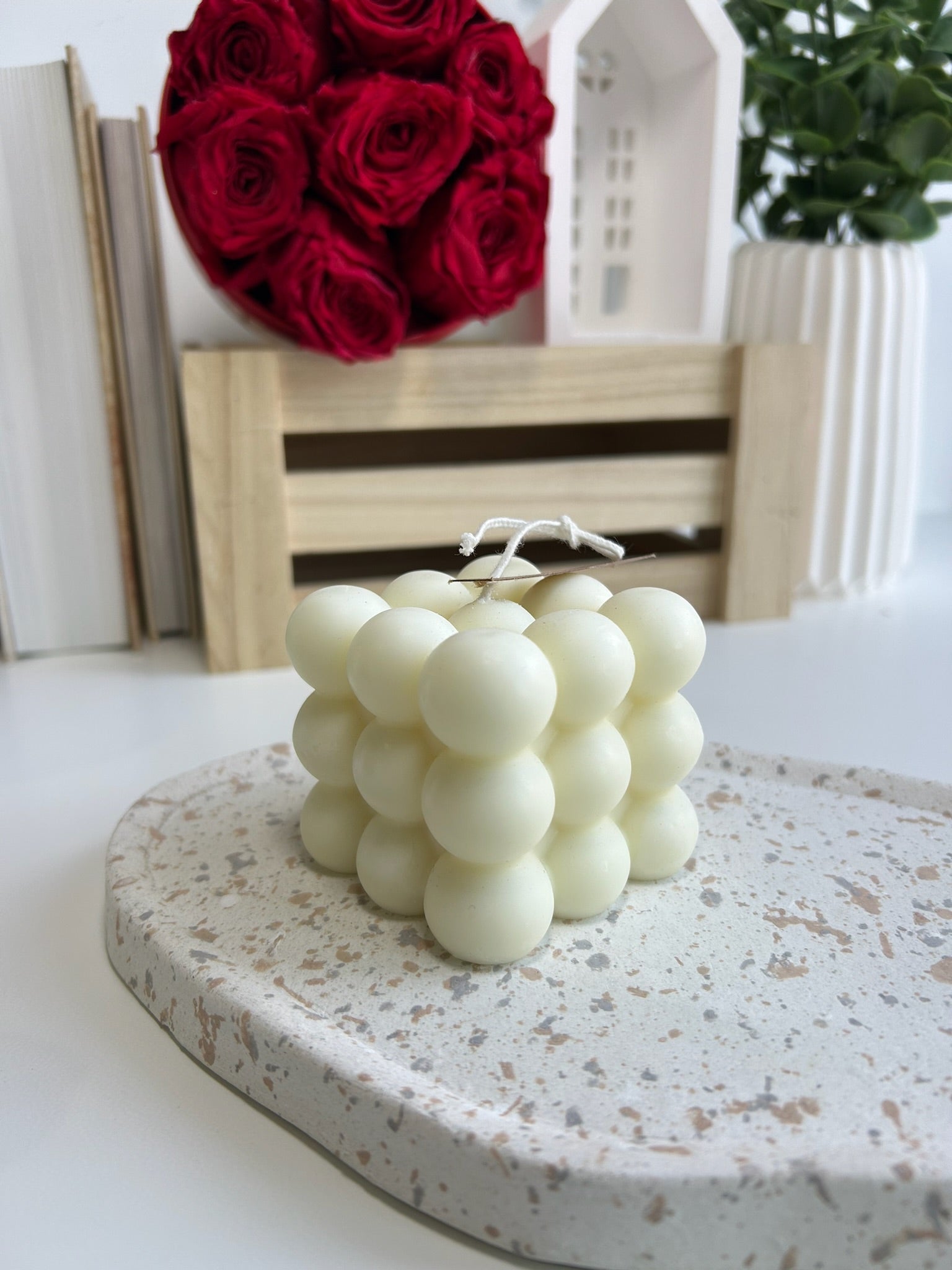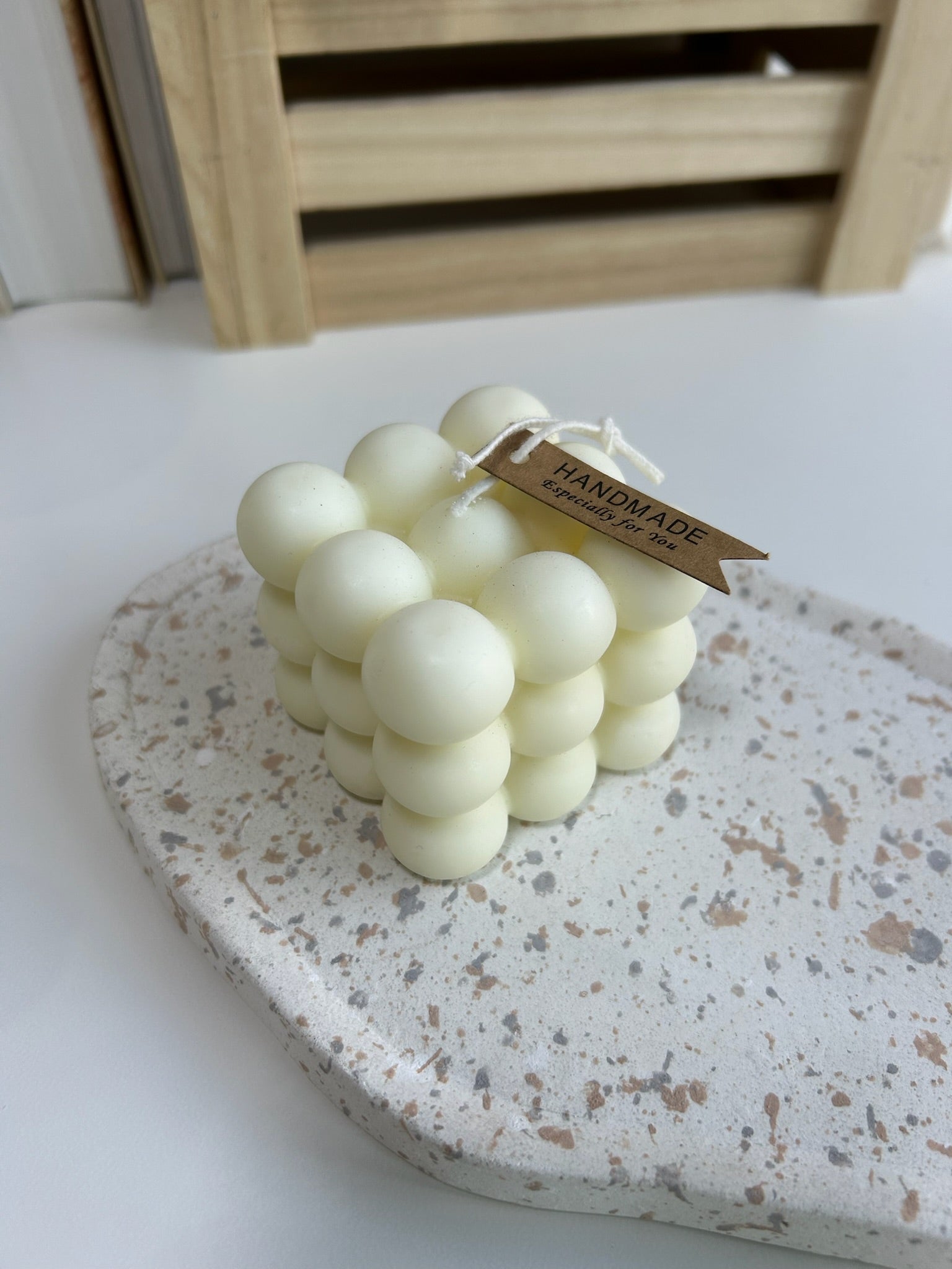 Nuestra vela bubble combina diseño moderno y delicadeza artesanal. Hecha con cera natural, su forma divertida y elegante aporta un toque decorativo único a cualquier espacio. Al encenderla, desprende una luz suave y acogedora que transforma el ambiente en un rincón cálido y con estilo.