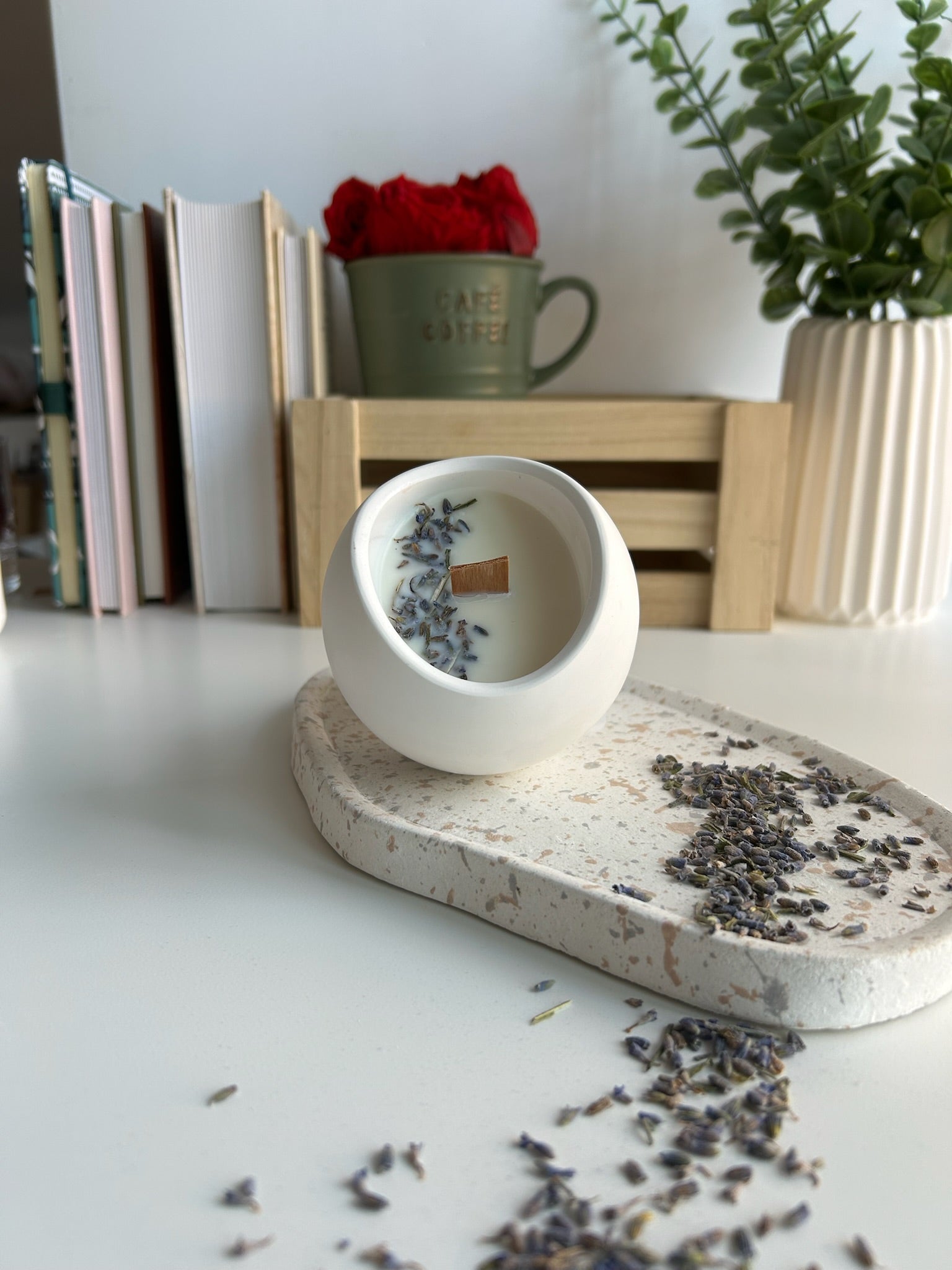 Disfruta de la calma y frescura del aroma a lavanda con nuestra vela elaborada en un recipiente artesanal de resina ecológica. Su fragancia suave y relajante, combinada con un diseño sostenible y elegante, crea un ambiente acogedor y armonioso, ideal para tus momentos de bienestar en el hogar.