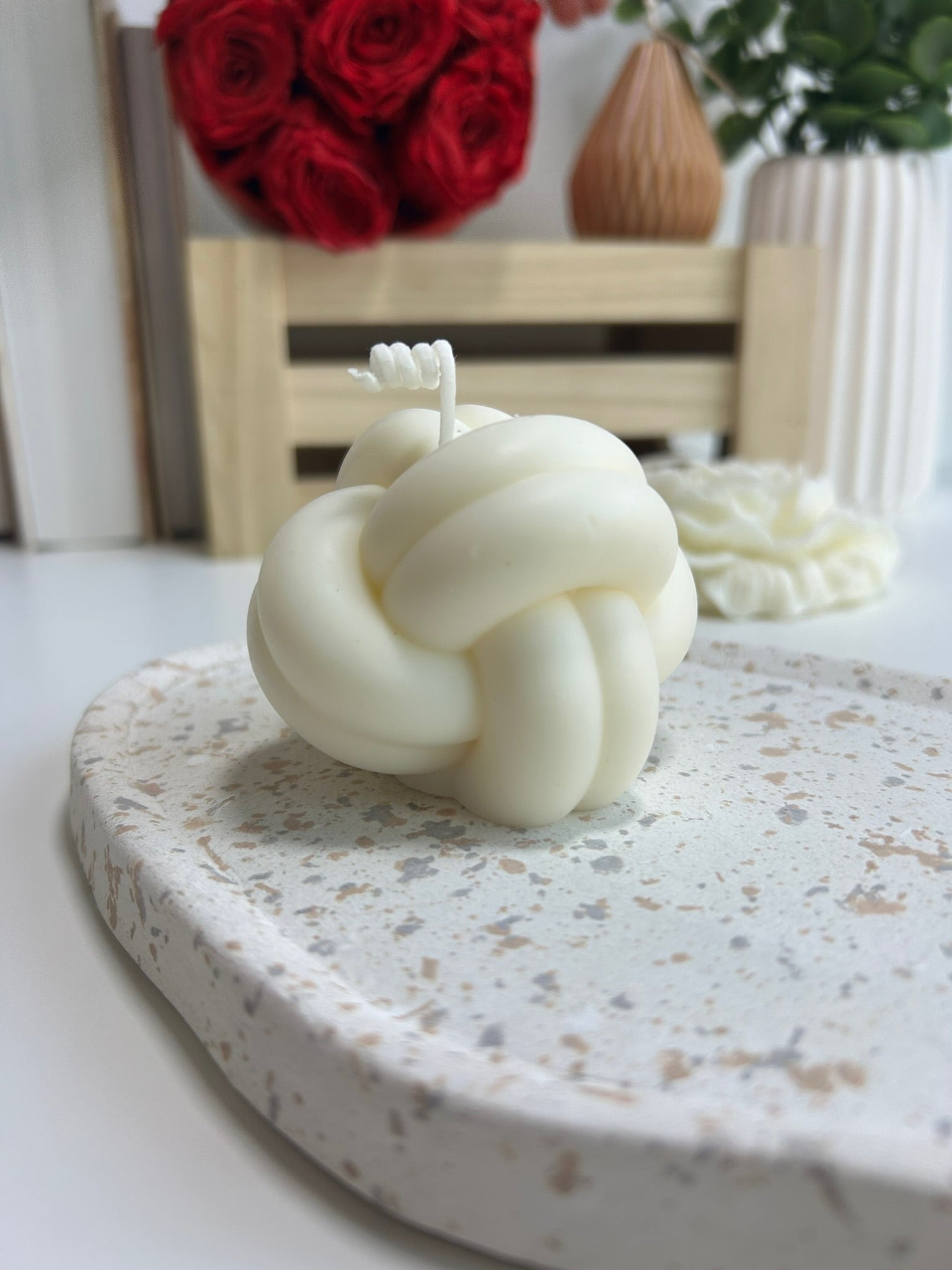 Nuestra vela cojín con forma de nudo combina diseño moderno y artesanía en una pieza única. Hecha con cera natural, su forma entrelazada aporta un toque minimalista y elegante a cualquier rincón. Perfecta para decorar o regalar, crea una atmósfera cálida y contemporánea llena de estilo y personalidad.